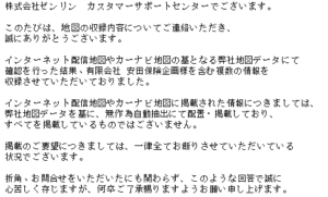 gooやYahoo!などのマップを使っているゼンリン社へ問い合わせメールを送ってみると・・・。