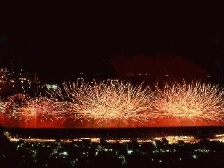 海上自爆というものもあり、海側から花火をあげるので、当日の天候、海の荒れ次第によって、例年、開催日の少し延期ということが多かったです。