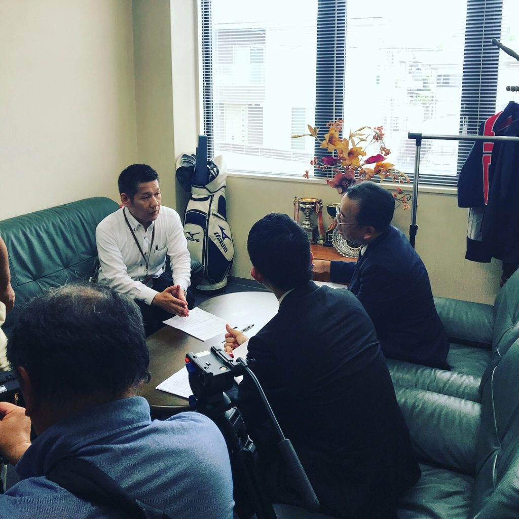お昼休みの時間に、今日はインタビュー動画(企業分野の保険の取り組みについて)を撮影していただきました。
