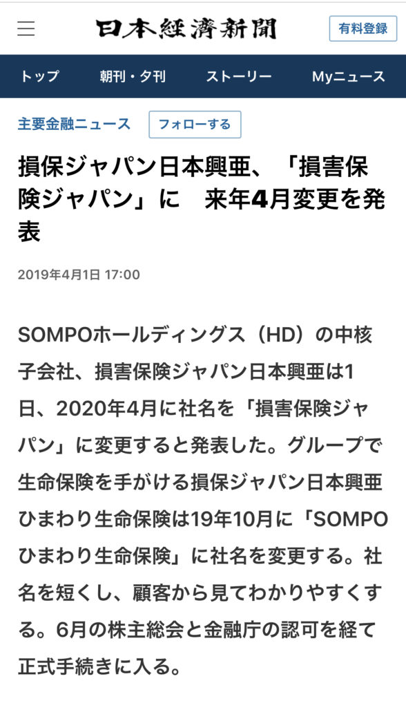2014年4月に損害保険ジャパンと日本興亜損害保険が合併し、損害保険ジャパン日本興亜となったのですが、やはり少し社名が長いですよね(汗)