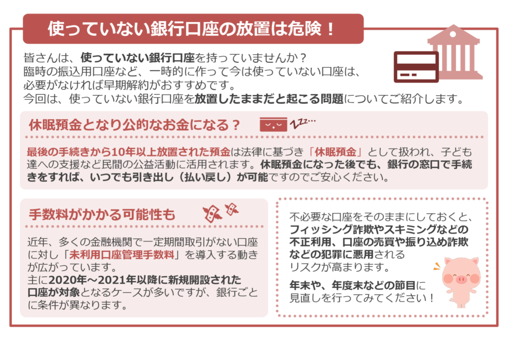 2026年2月15日 / 最終更新日 : 2026年2月15日 森田 真人 あんしん保険ニュース 使っていない銀行口座 不必要な口座をそのままにしておくとリスクが高まりますね。 年度末など節目に見直しを行ってみてください! ライフコートの最新情報をお届けします @AgentMasato 個人/事業者/法人さま向けの保険のご相談を承っております保険のご相談をお待ちしております資料のご請求はこちらFacebookXBlueskyHatenaCopy コメントを残す コメントをキャンセルメールアドレスが公開されることはありません。 ※ が付いている欄は必須項目ですコメント ※ 名前 ※ メール ※ サイト