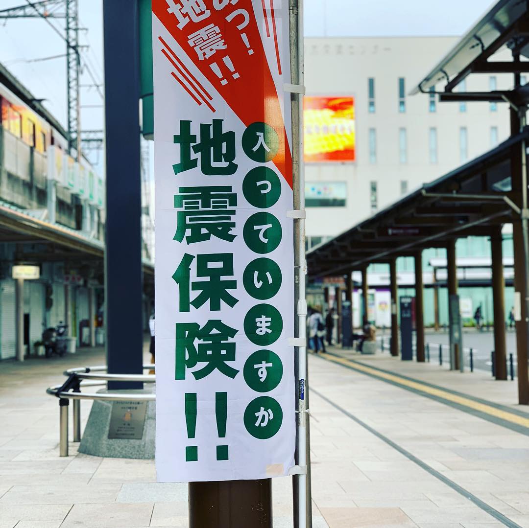 2018年10月23日保険にまつわる情報森田 真人 地震保険普及キャンペーン出社前に。 今朝は、奈良県損害保険代理業協会の「地震保険普及キャンペーン」で、大和八木駅前にて、会員、保険会社 社員さまと一緒にチラシ・ティッシュ配布をしました。 終わった頃に雨が…