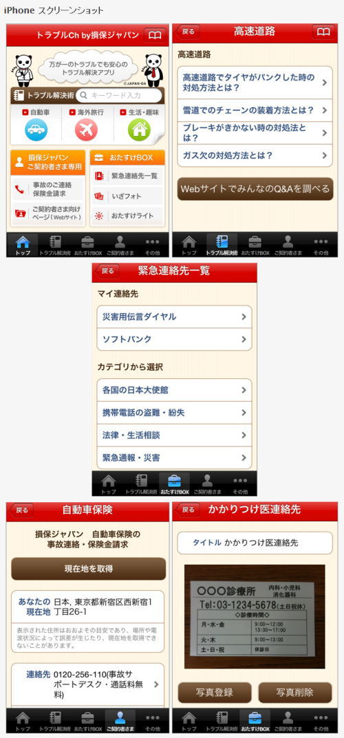 2011年8月10日保険にまつわる情報森田 真人 i phoneお持ちの方へトラブルCh by損保ジャパンの無料のアプリ入れてみました。 万が一のトラブルに役立ちます。 アプリ内のいざフォトには、証券、代理店連絡先、車検証、ナンバープレート、整備工場、かかりつけ医連絡先などを写真に残して保存する […]
