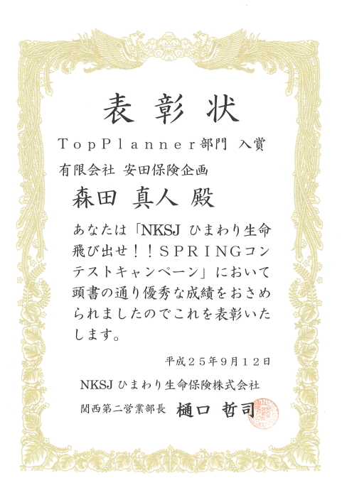 2012年10月11日保険にまつわる情報森田 真人 上半期 表彰先月末、 表彰式に招待していただきました。 集まった方々のいろいろな話を聞けて、 日々のモチベーションの維持の大きな要素にもなり、刺激も受けてまいりました。 数多く、お客さまのご相談を受け、保険としてよい形で、解決のひと […]