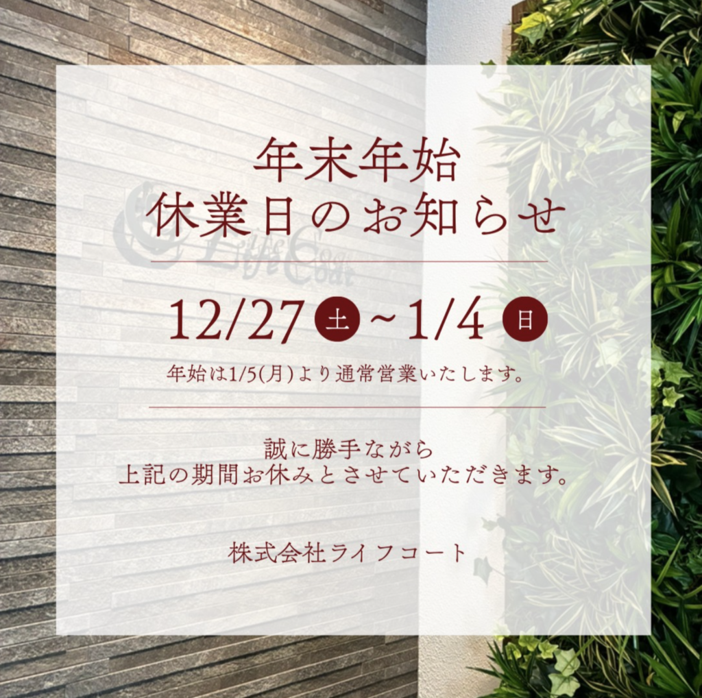 12月27日(土)から1月4日(日)まで冬季休暇とさせていただきます。