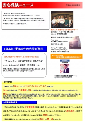 2014年11月27日保険にまつわる情報森田 真人 2014年度 安心保険ニュースこんにちは。 先月に発行した弊社のお客様向け安心保険ニュースができていたのに、更新しておらず、 遅くなりましたが、こちらにもUPいたします。 およそ年2回程、ニュース発信しておりますので、ご興味のある方は弊社ホームページ […]